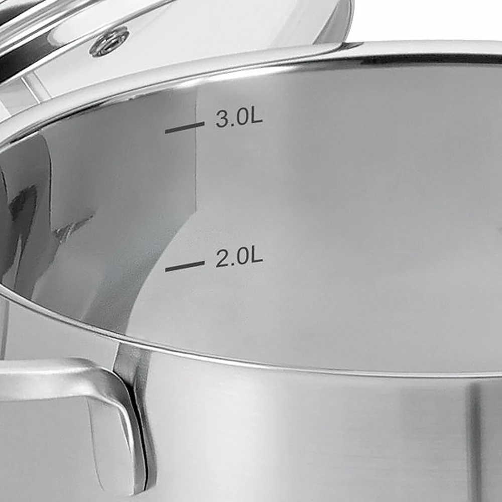 هر قابلمه دارای خطوط اندازه‌گیری داخلی است که به شما کمک می‌کند میزان دقیق مواد غذایی یا مایعات را بسنجید. این قابلیت باعث می‌شود سرویس قابلمه استیل پروفی کوک نه تنها برای پخت سریع و آسان مناسب باشد، بلکه تجربه‌ای حرفه‌ای و دقیق از آشپزی را نیز ارائه دهد. استفاده از این سرویس قابلمه برای پخت انواع غذاهای ایرانی و بین‌المللی بسیار راحت و کاربردی است.